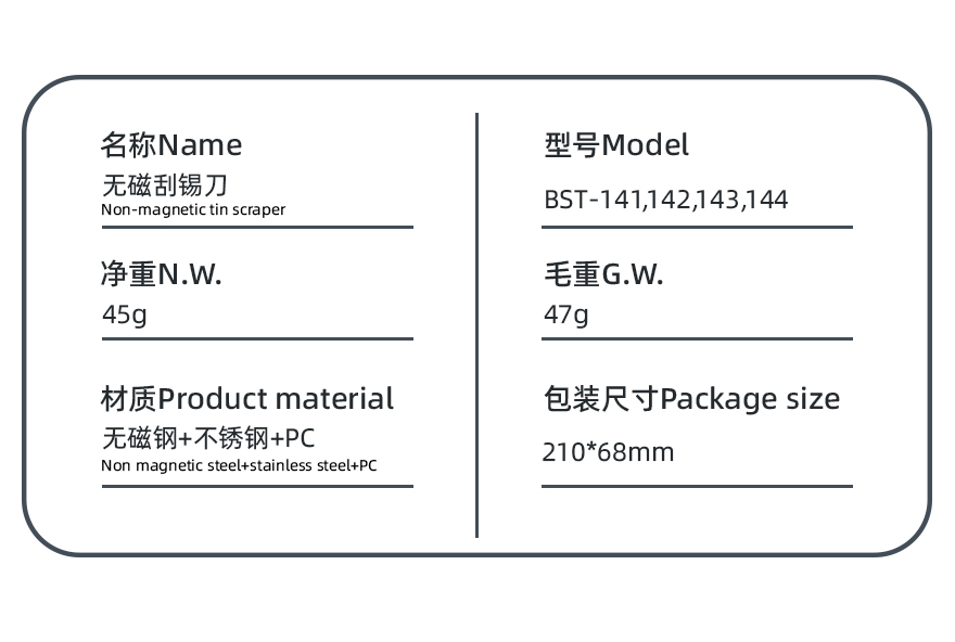2 刀头无磁性:不吸附磁性植锡台,刮锡均匀便捷