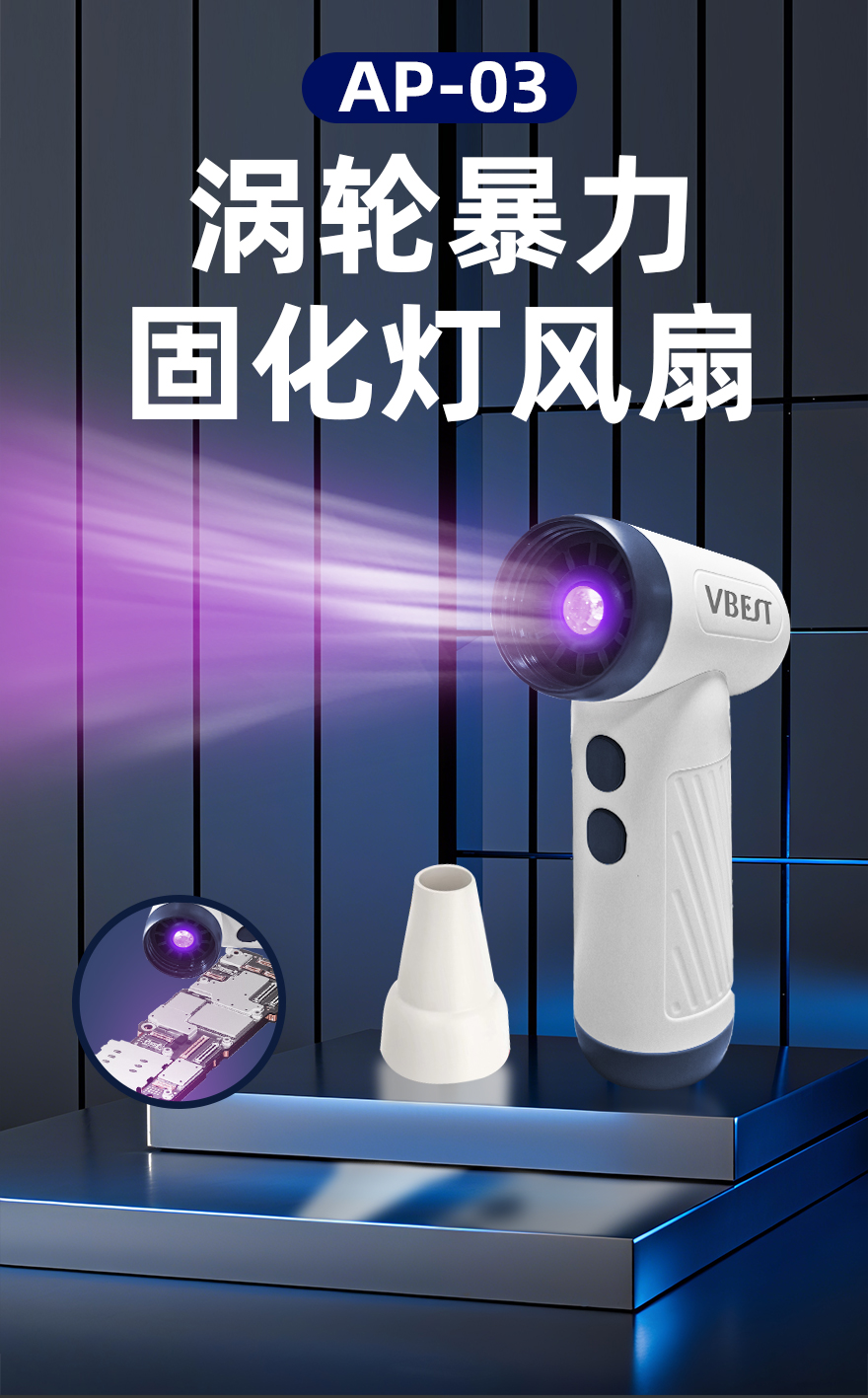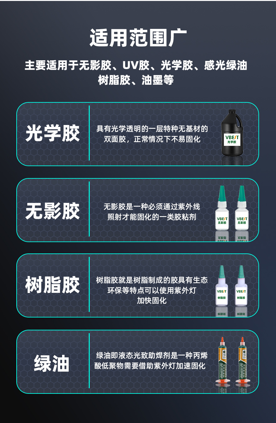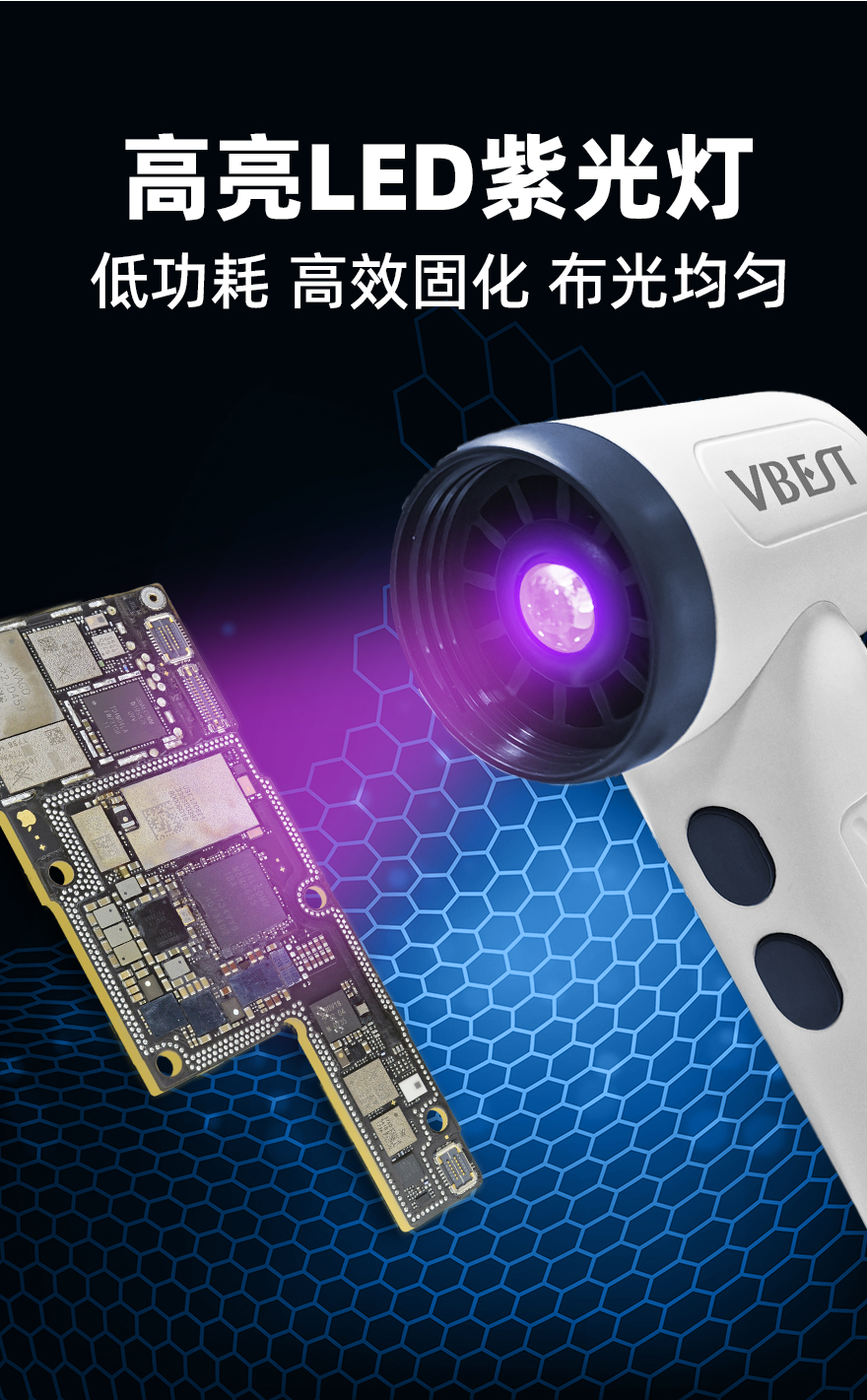 配备高亮LED紫光灯,支持UV胶、无影胶等光敏材料高效固化,散热与固化可同步进行
