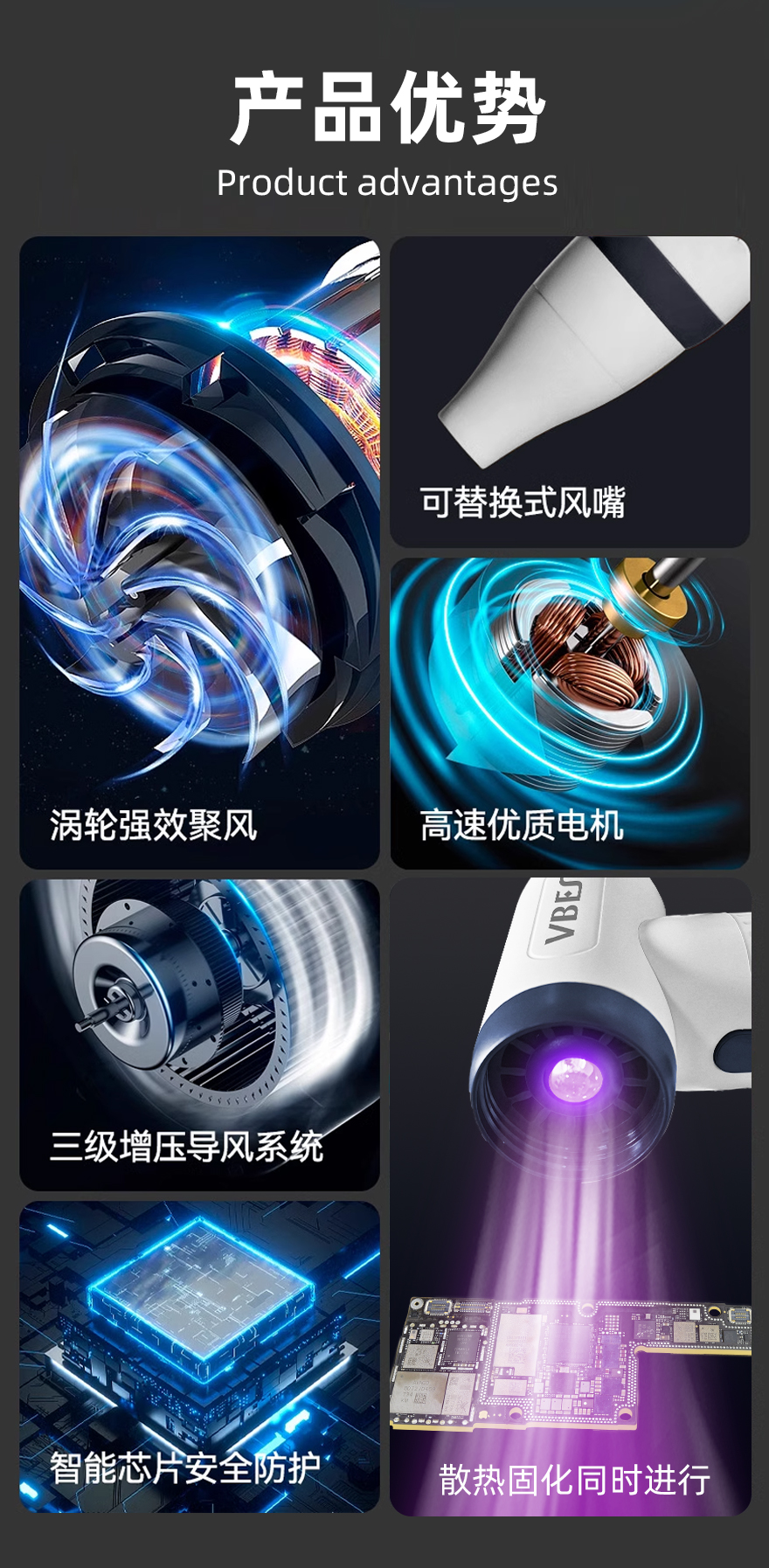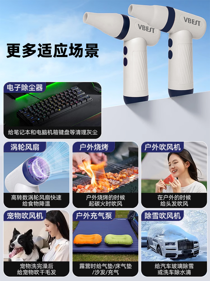 倍思特暴力风扇 涡轮超高风速无刷电击吹风筒 带UV灯超长电池超长续航