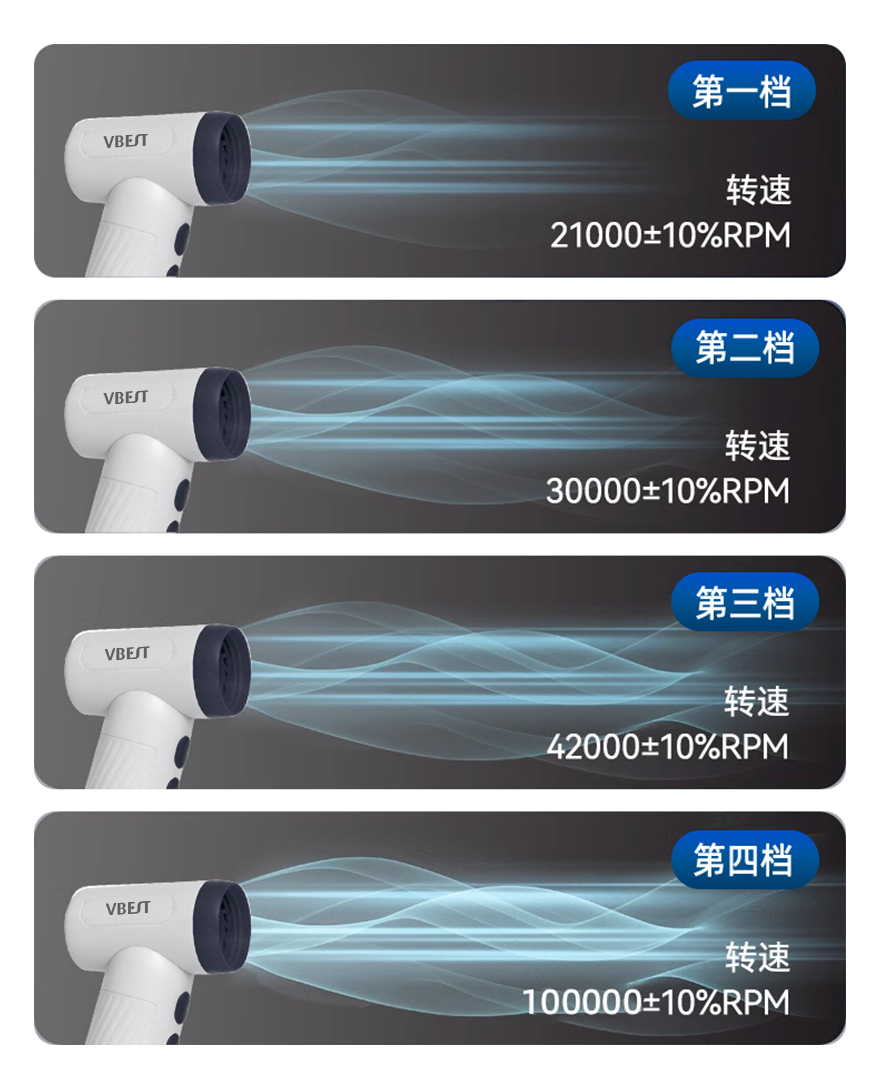 4档位转速调节(21000/30000/42000/100000rpm),适配不同场景需求