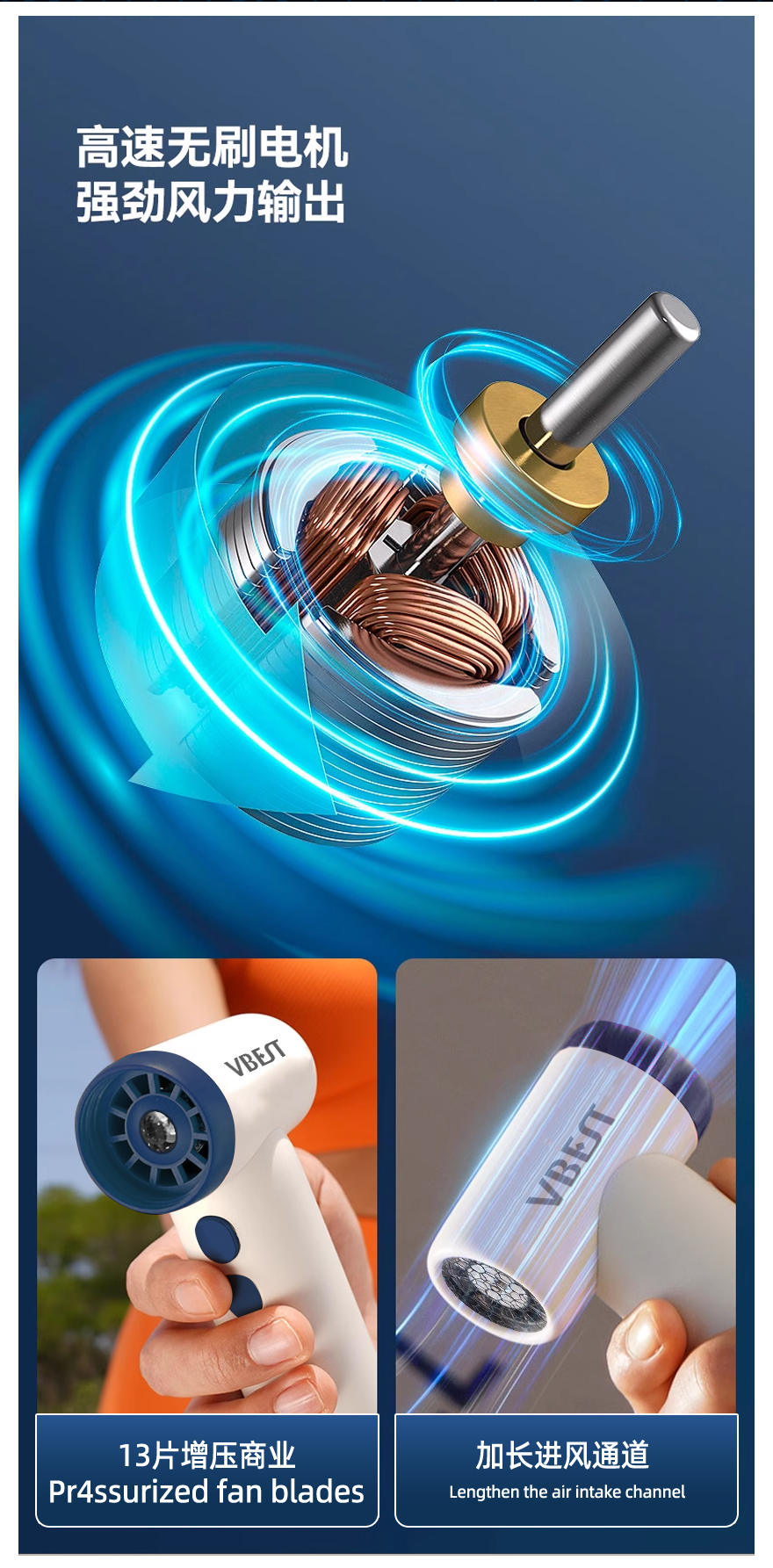 涡轮强效聚风设计搭配三级增压导风系统,风力集中风速高
