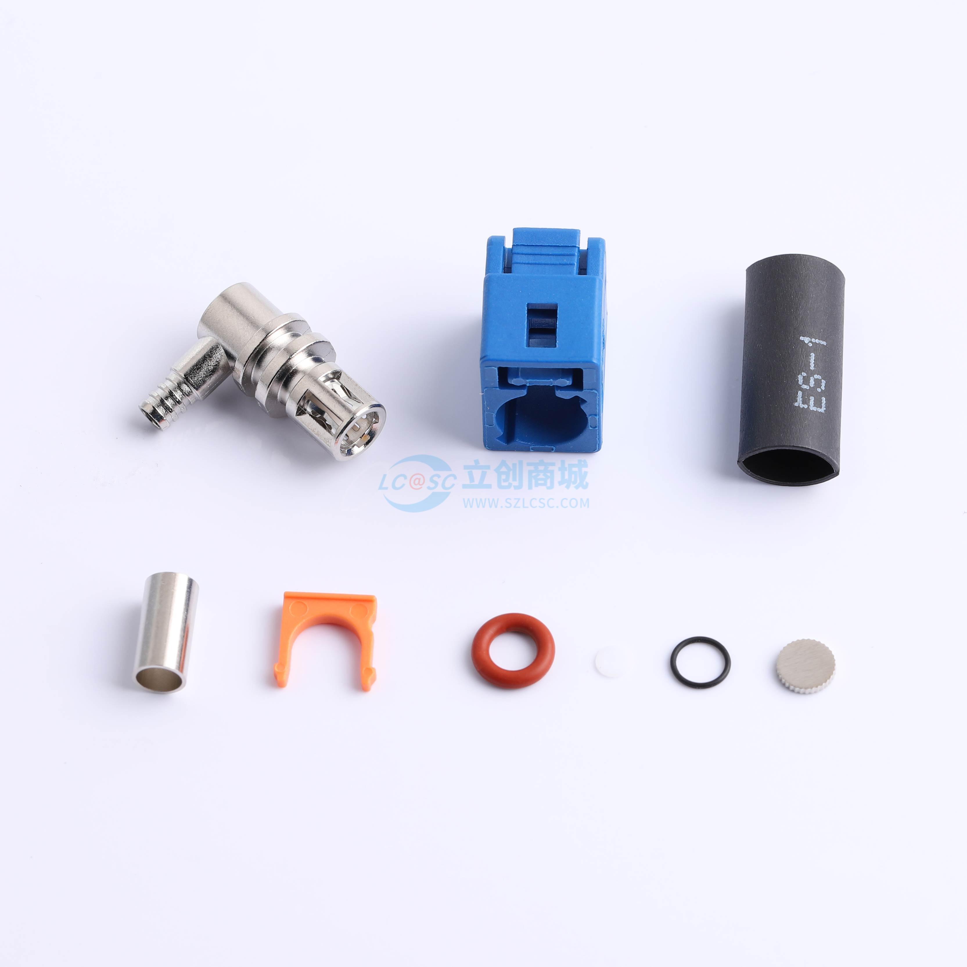 FAKRA线母,弯头,短体外壳,配DACAR302线,防水,C扣,蓝色,九件式