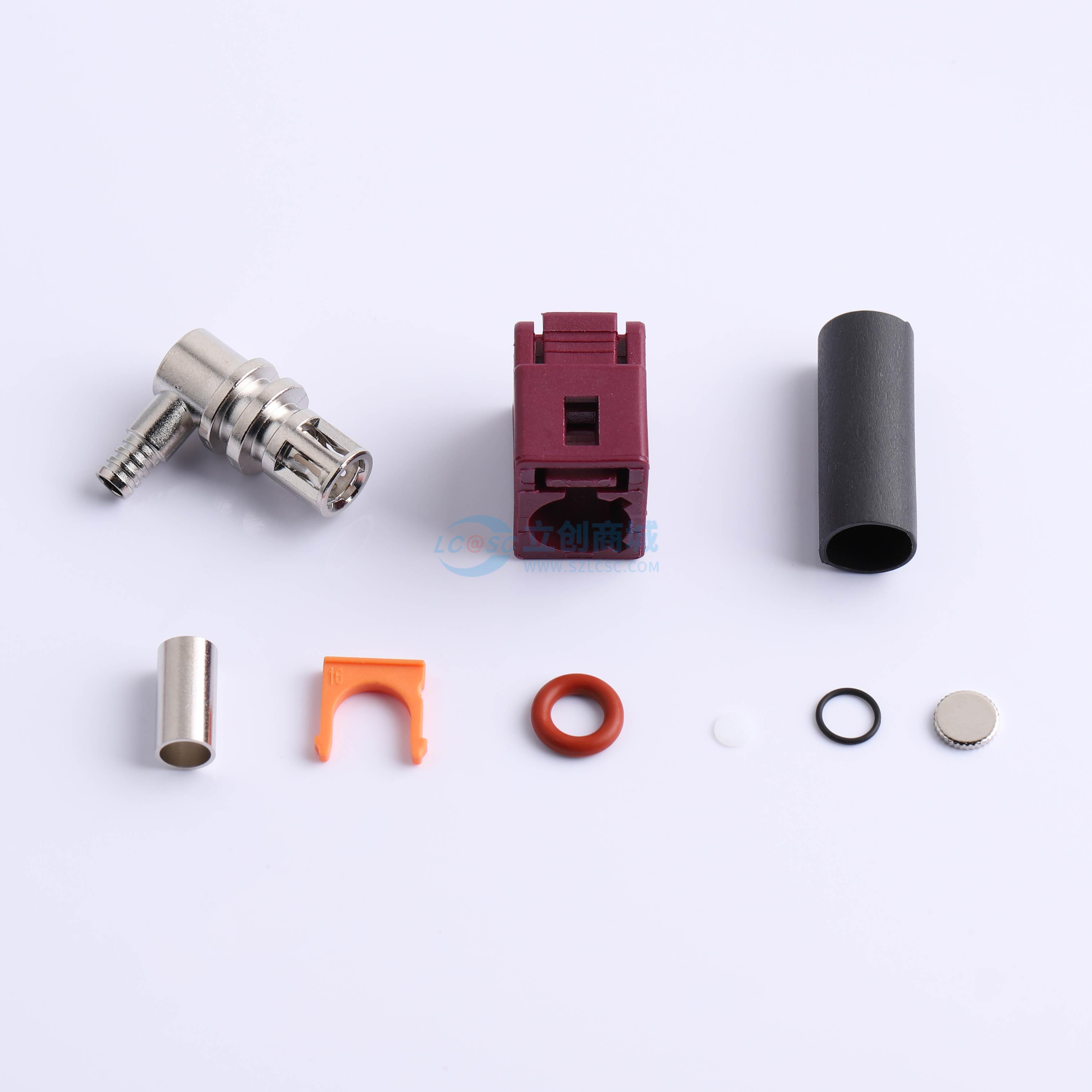 FAKRA线母,弯头,短体外壳,配DACAR302线,防水,D扣,酒红紫色,九件式