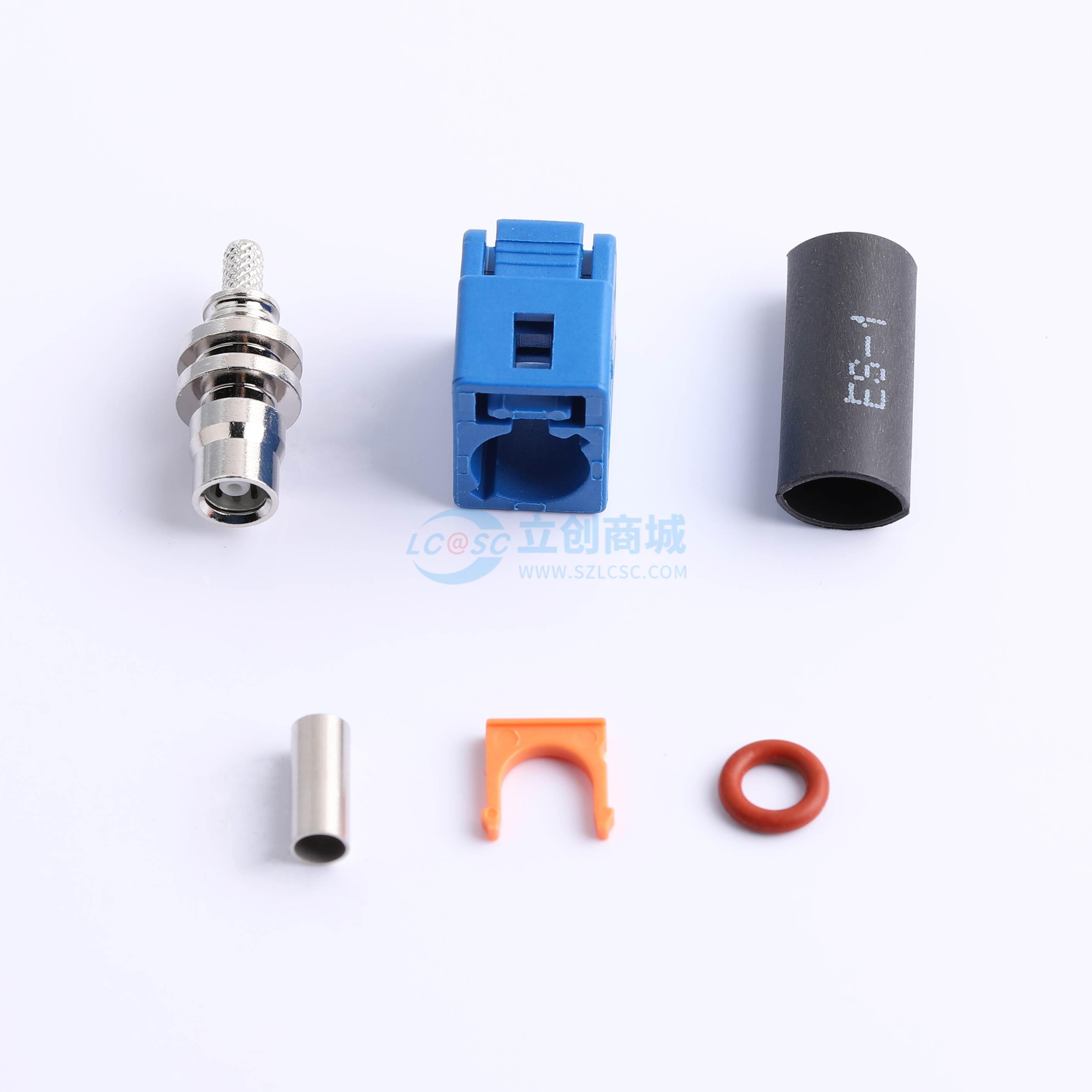 FAKRA线母,直头,短体外壳,配RG174线,防水,C扣,蓝色,六件式