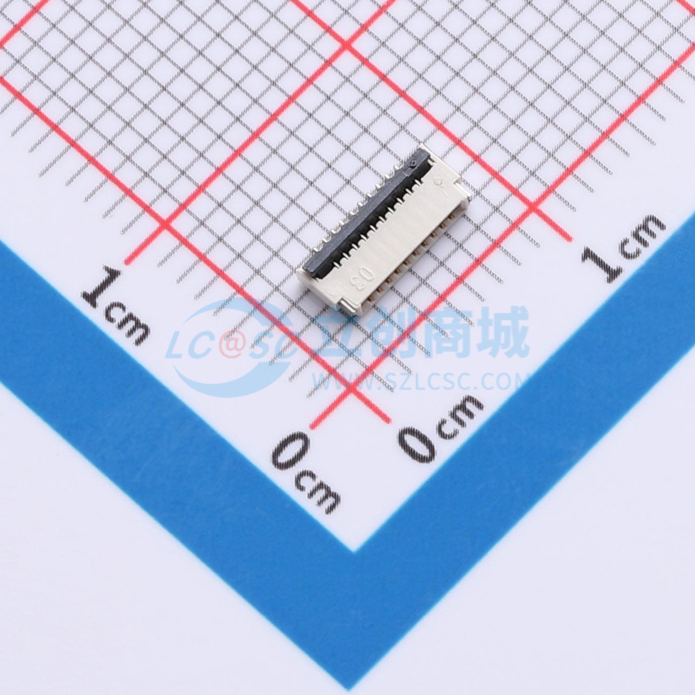 - 间距:0.5mm P数:10P 前插后掀式 双侧触点/上下接 板上高度1MM