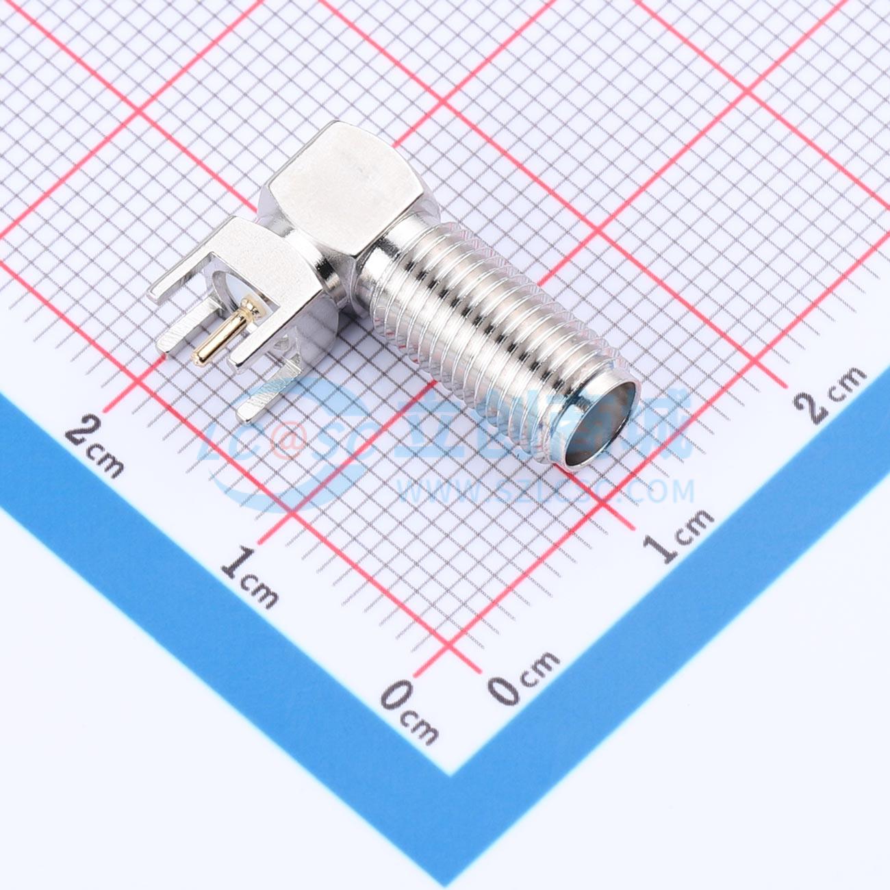 SMA-KWE镀镍弯母头座子(母针)-镀镍-正脚-13牙(19*13mm)吸塑盘包装100PCS/盘 1000PCS/扎不要配件 盐雾48小时(备注:绝缘子下陷1-2mm)