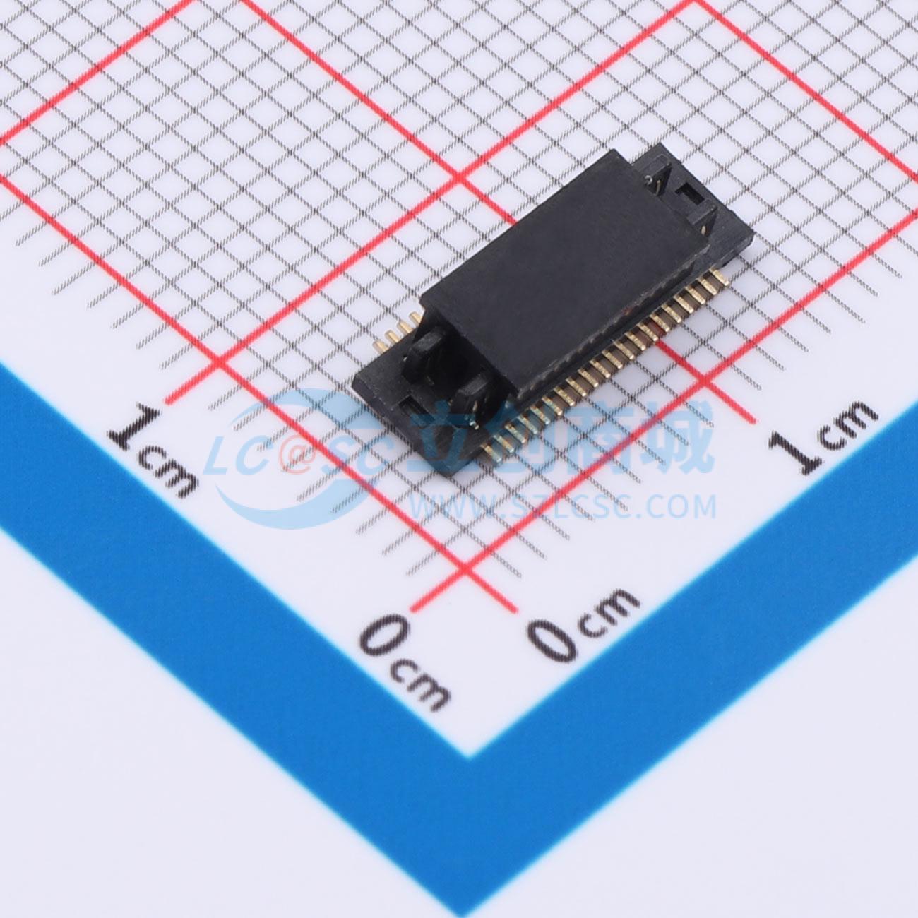 - 双槽板对板连接器0.5 40P 0.8H公座 SMT 带柱 PA9T 黑色镀全金1u 编带