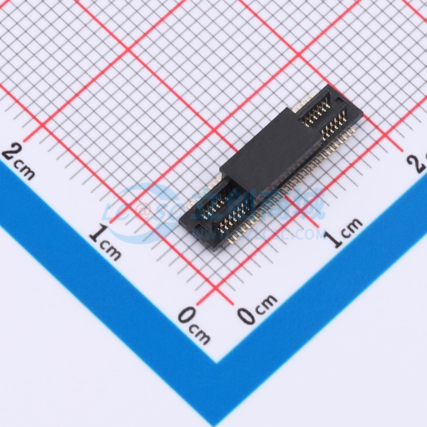 - 双槽板对板连接器0.5 60P 0.8H公座 SMT 带柱 PA9T 黑色镀全金1u 编带
