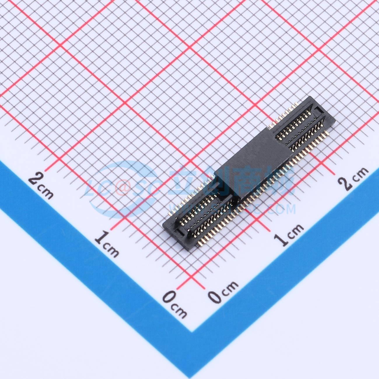- 双槽板对板连接器0.5 80P 0.8H公座 SMT 带柱 PA9T 黑色镀全金1u 编带