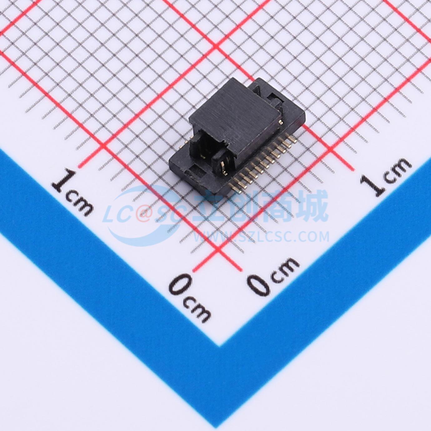 - 双槽板对板连接器0.5 22P 1.3H公座 SMT 带柱 PA9T 黑色镀全金1u 编带