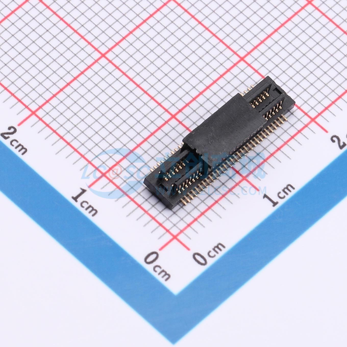- 双槽板对板连接器0.5 60P 1.3H公座 SMT 带柱 PA9T 黑色镀全金1u 编带