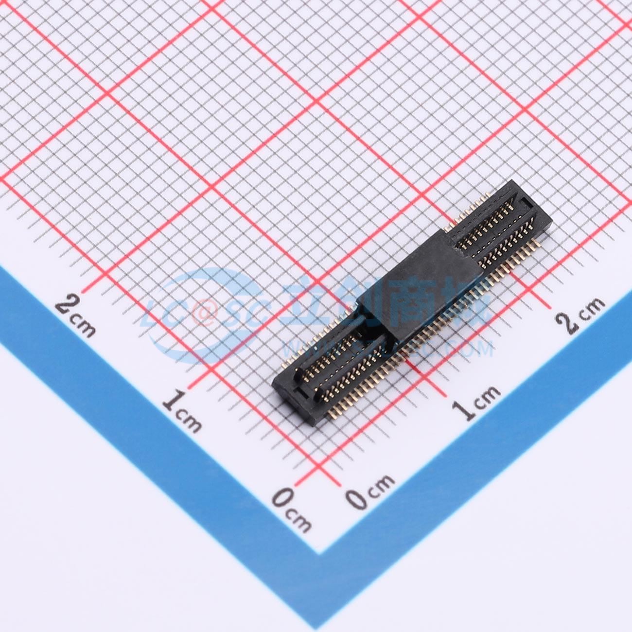 - 双槽板对板连接器0.5 80P 1.3H公座 SMT 带柱 PA9T 黑色镀全金1u 编带
