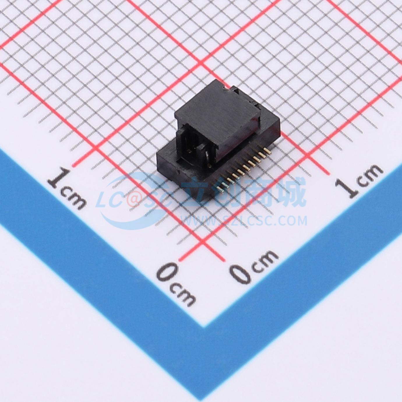 - 双槽板对板连接器0.5 20P 2.0H公座 SMT 带柱 PA9T 黑色镀全金1u 编带