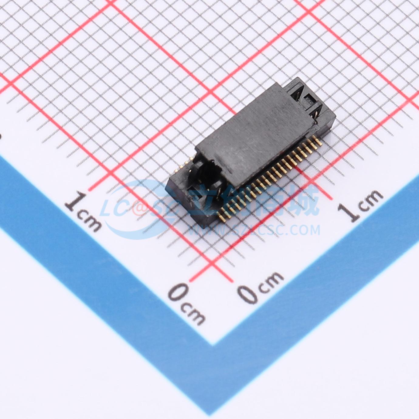 - 双槽板对板连接器0.5 40P 2.0H公座 SMT 带柱 PA9T 黑色镀全金1u 编带
