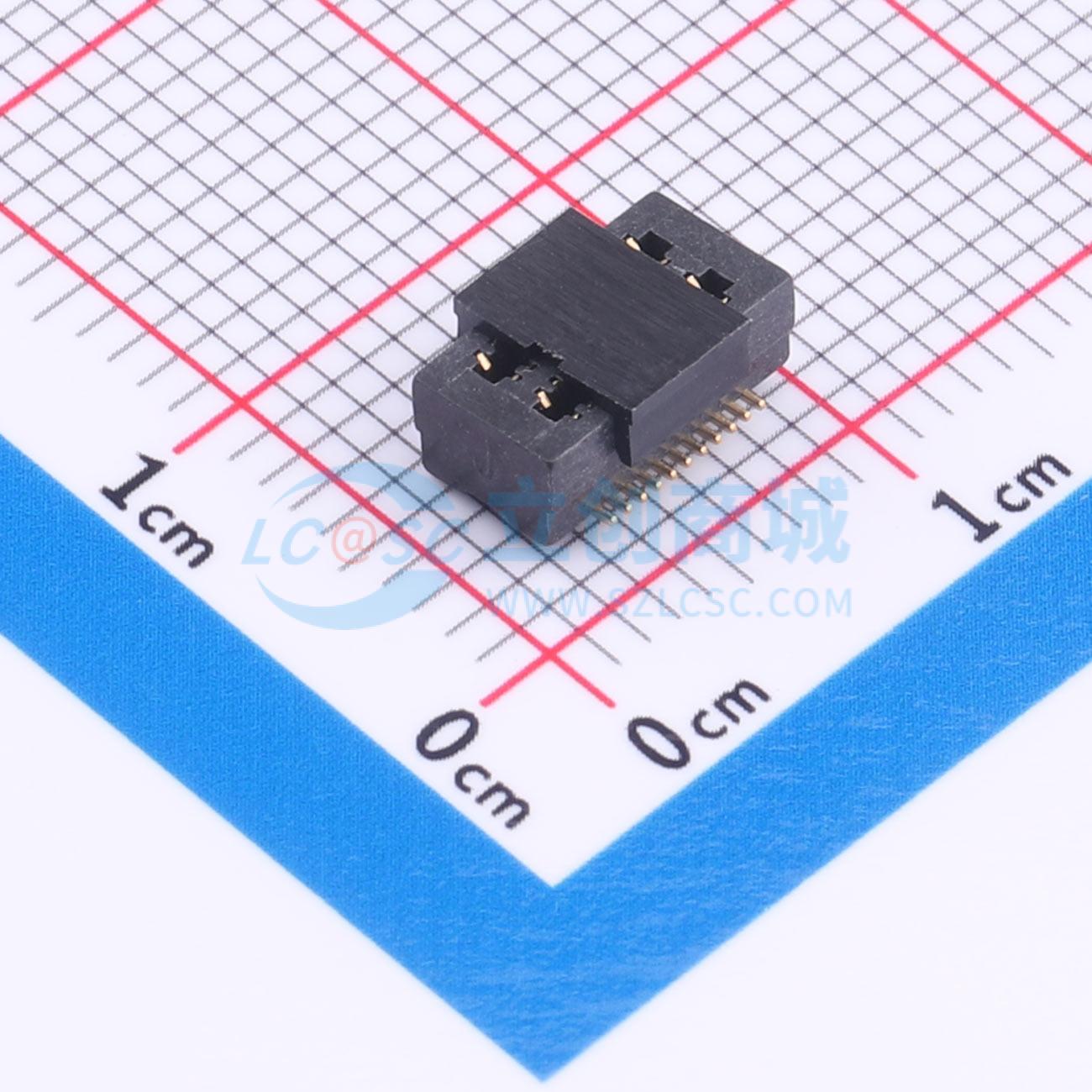 - 双槽板对板连接器0.5 22P 3.0H母座 SMT 带柱 PA9T 黑色镀全金1u 编带