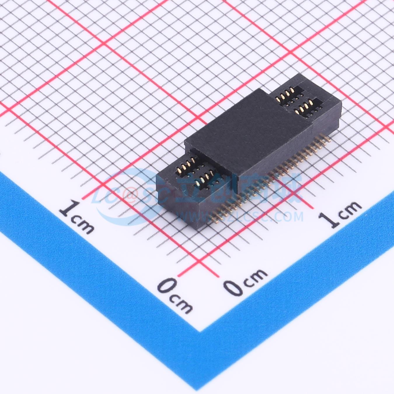 - 双槽板对板连接器0.5 50P 3.0H母座 SMT 带柱 PA9T 黑色镀全金1u 编带