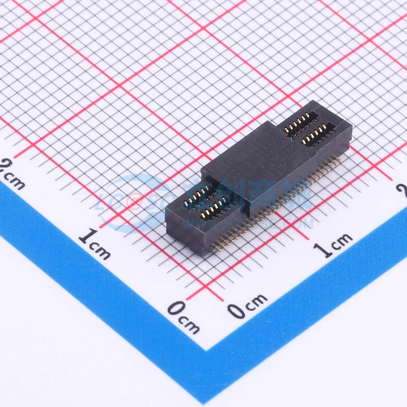 - 双槽板对板连接器0.5 60P 3.0H母座 SMT 带柱 PA9T 黑色镀全金1u 编带