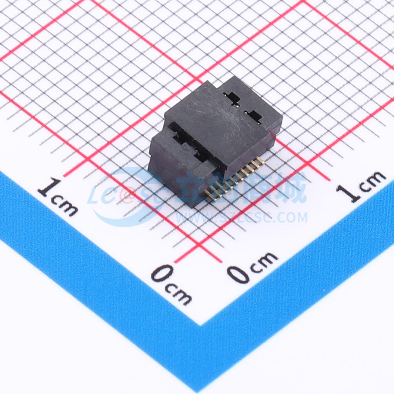 - 双槽板对板连接器0.5 20P 3.5H母座 SMT 带柱 PA9T 黑色镀全金1u 编带