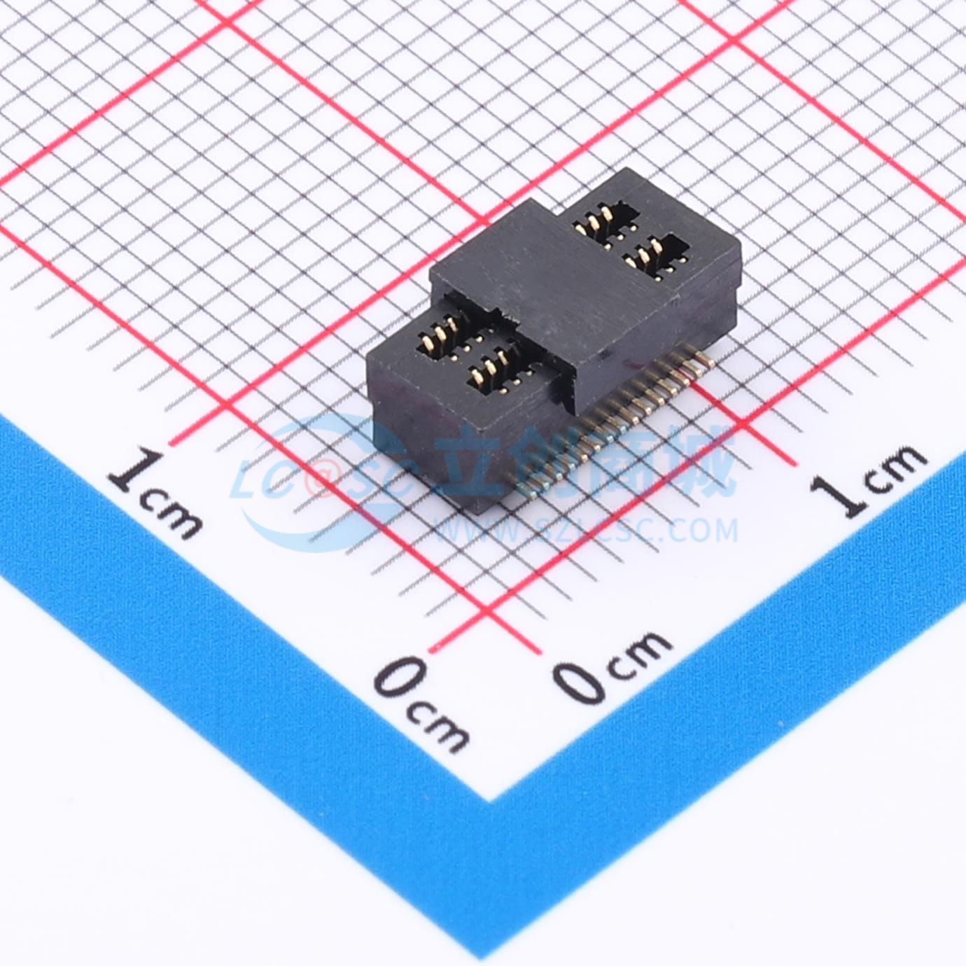 - 双槽板对板连接器0.5 30P 3.5H母座 SMT 带柱 PA9T 黑色镀全金1u 编带