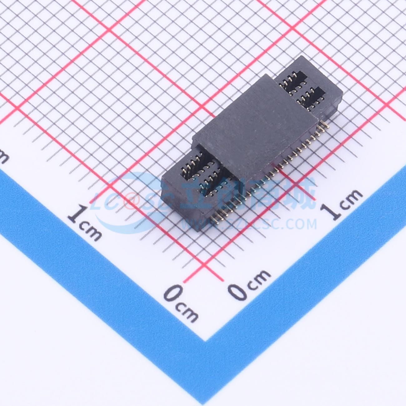 - 双槽板对板连接器0.5 50P 3.5H母座 SMT 带柱 PA9T 黑色镀全金1u 编带