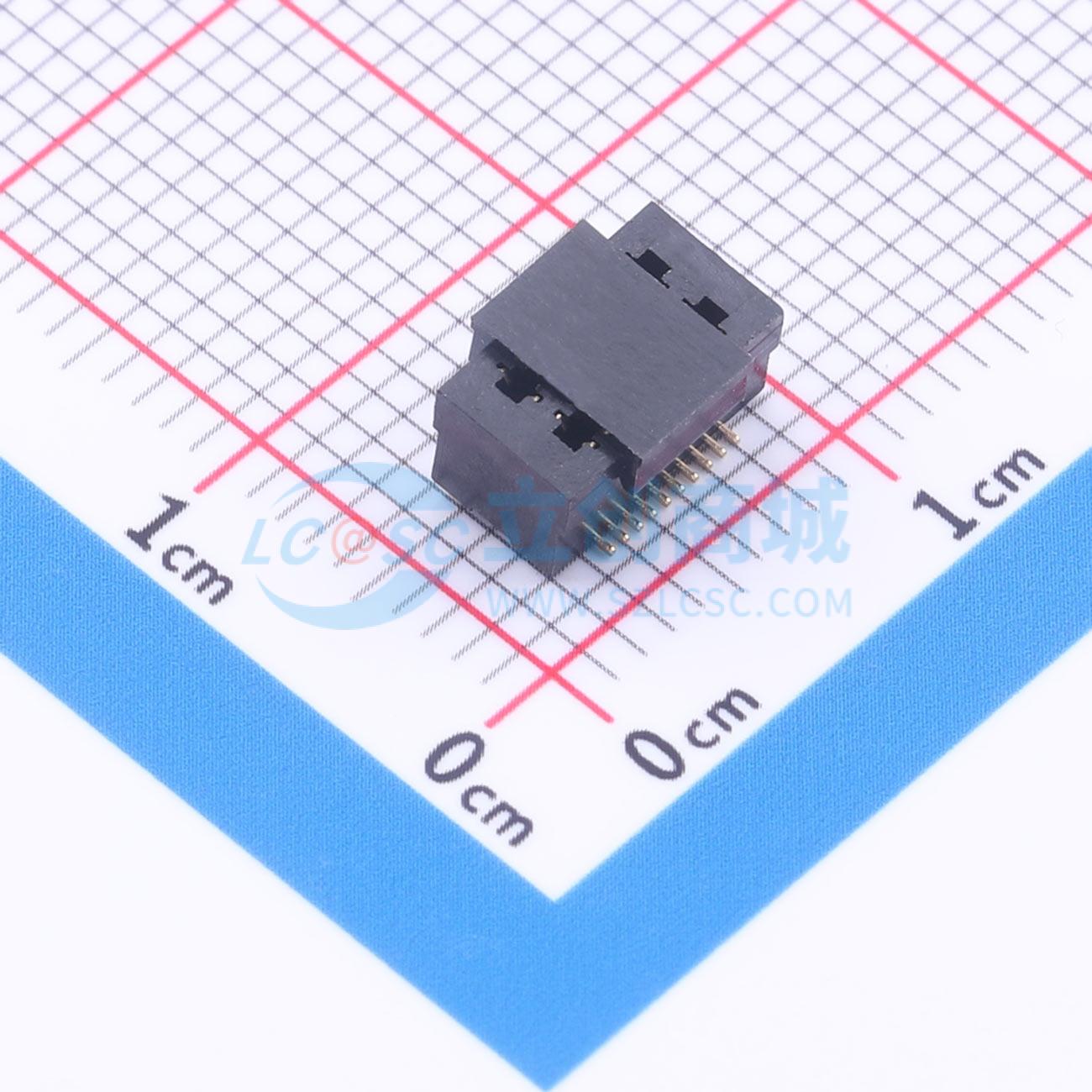 - 双槽板对板连接器0.5 20P 4.0H母座 SMT 带柱 PA9T 黑色镀全金1u 编带