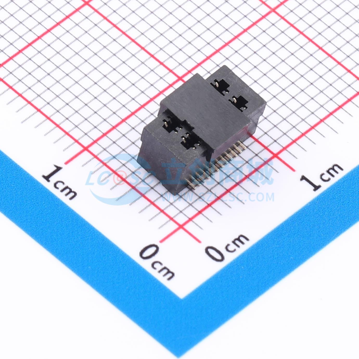 - 双槽板对板连接器0.5 24P 4.5H母座 SMT 带柱 PA9T 黑色镀全金1u 编带