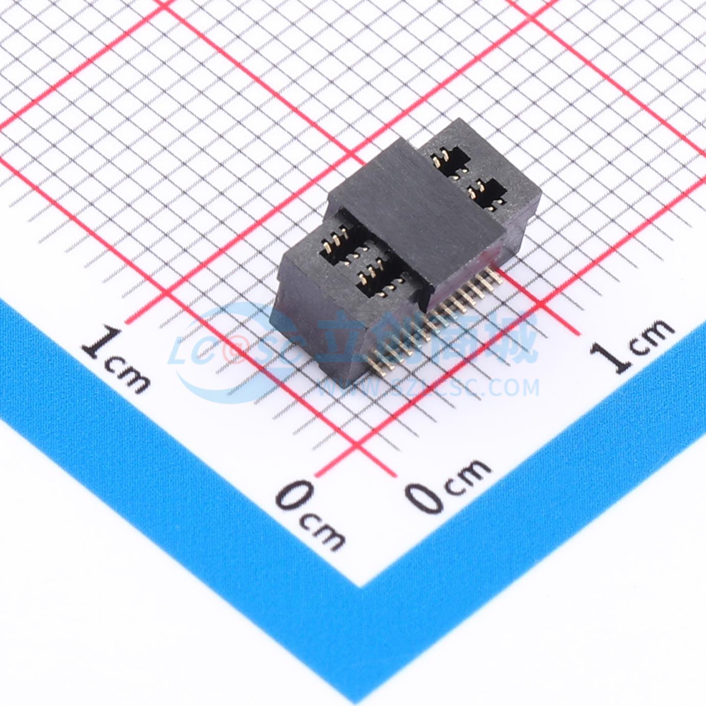 - 双槽板对板连接器0.5 28P 4.5H母座 SMT 带柱 PA9T 黑色镀全金1u 编带