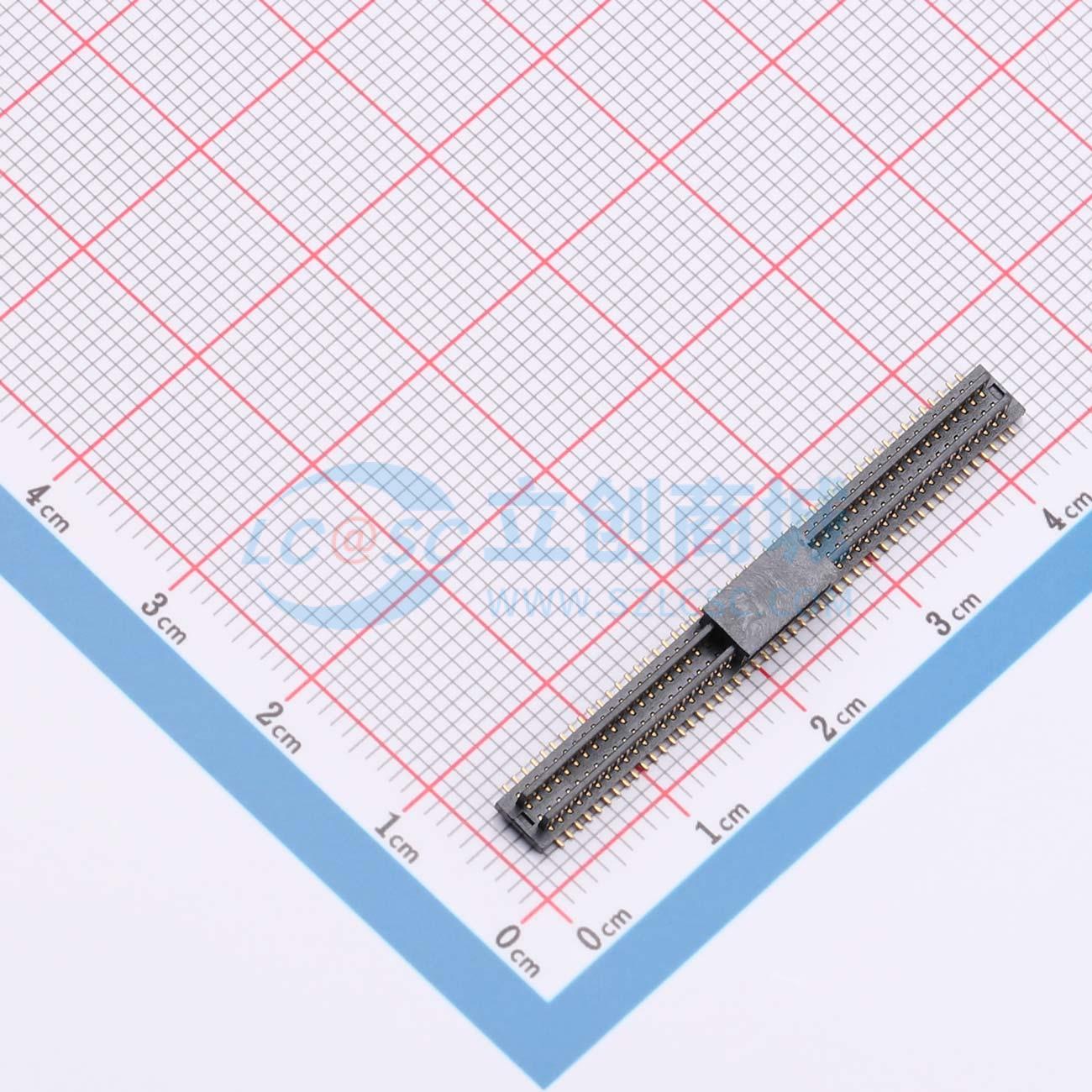 - 双槽板对板连接器0.8 100P 1.0H公座 SMT 带柱 PA9T 黑色镀全金1u 编带