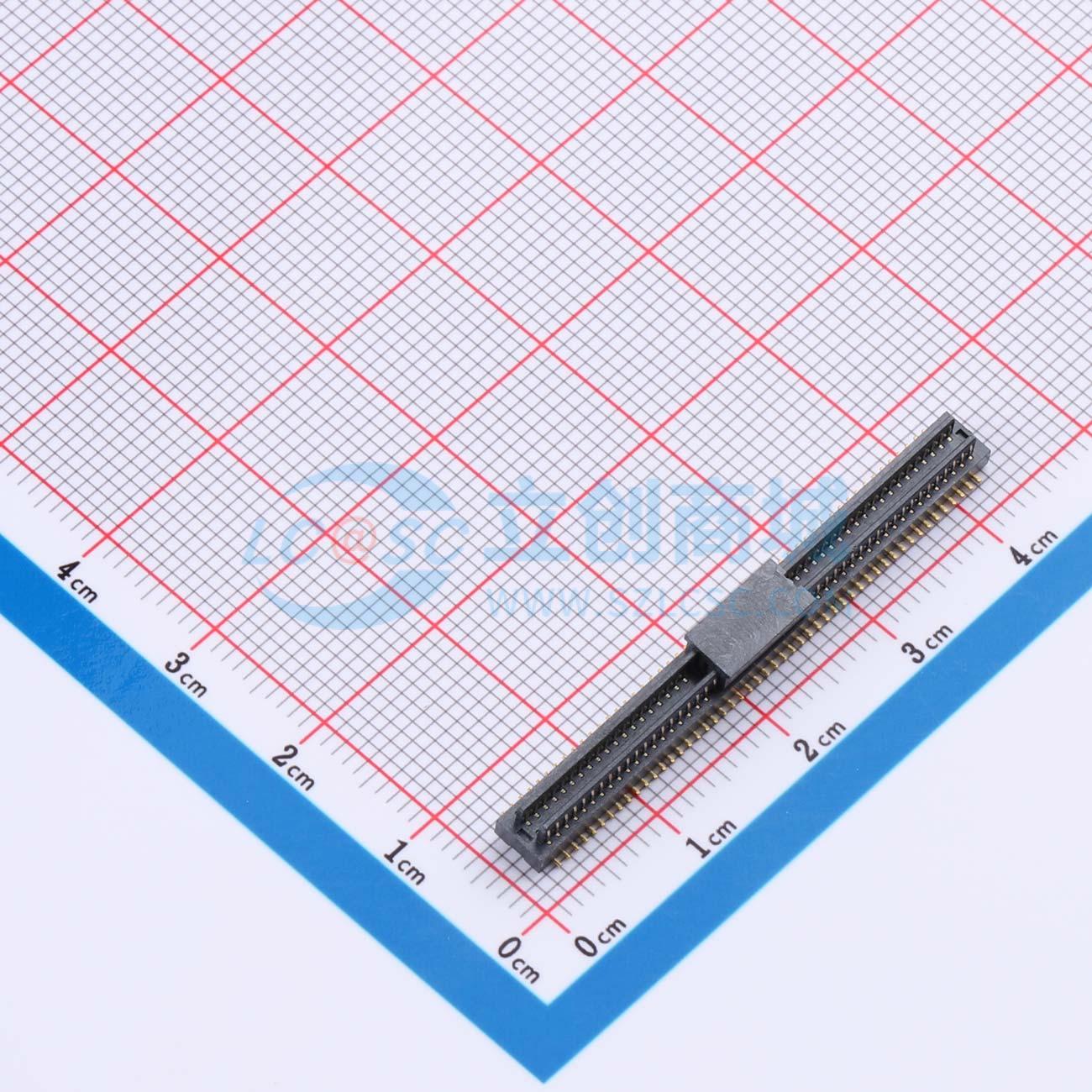 - 双槽板对板连接器0.8 100P 2.0H公座 SMT 带柱 PA9T 黑色镀全金1u 编带