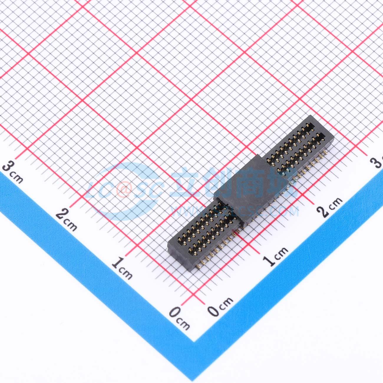 - 双槽板对板连接器0.8 60P 3.0H母座 SMT 带柱 PA9T 黑色镀全金1u 编带