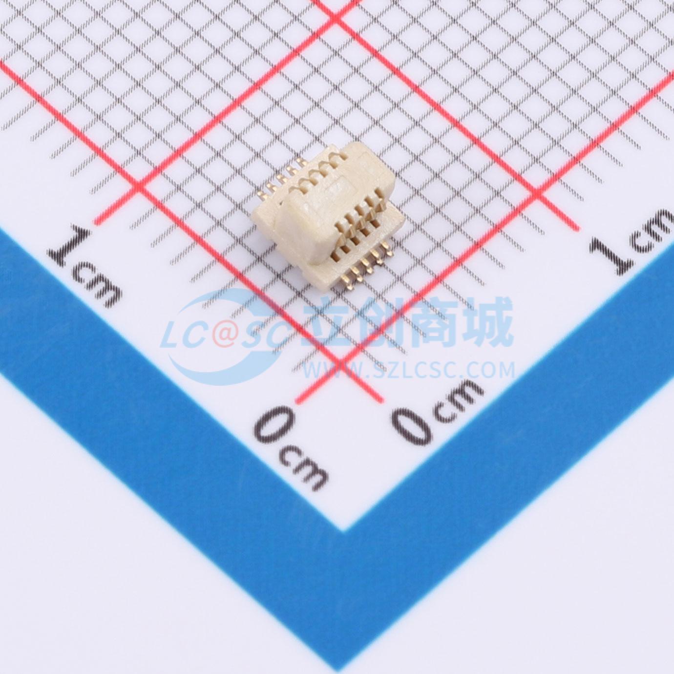 - 板对板连接器0.5 10P 公座 侧插 SMT 带柱 合高5.0