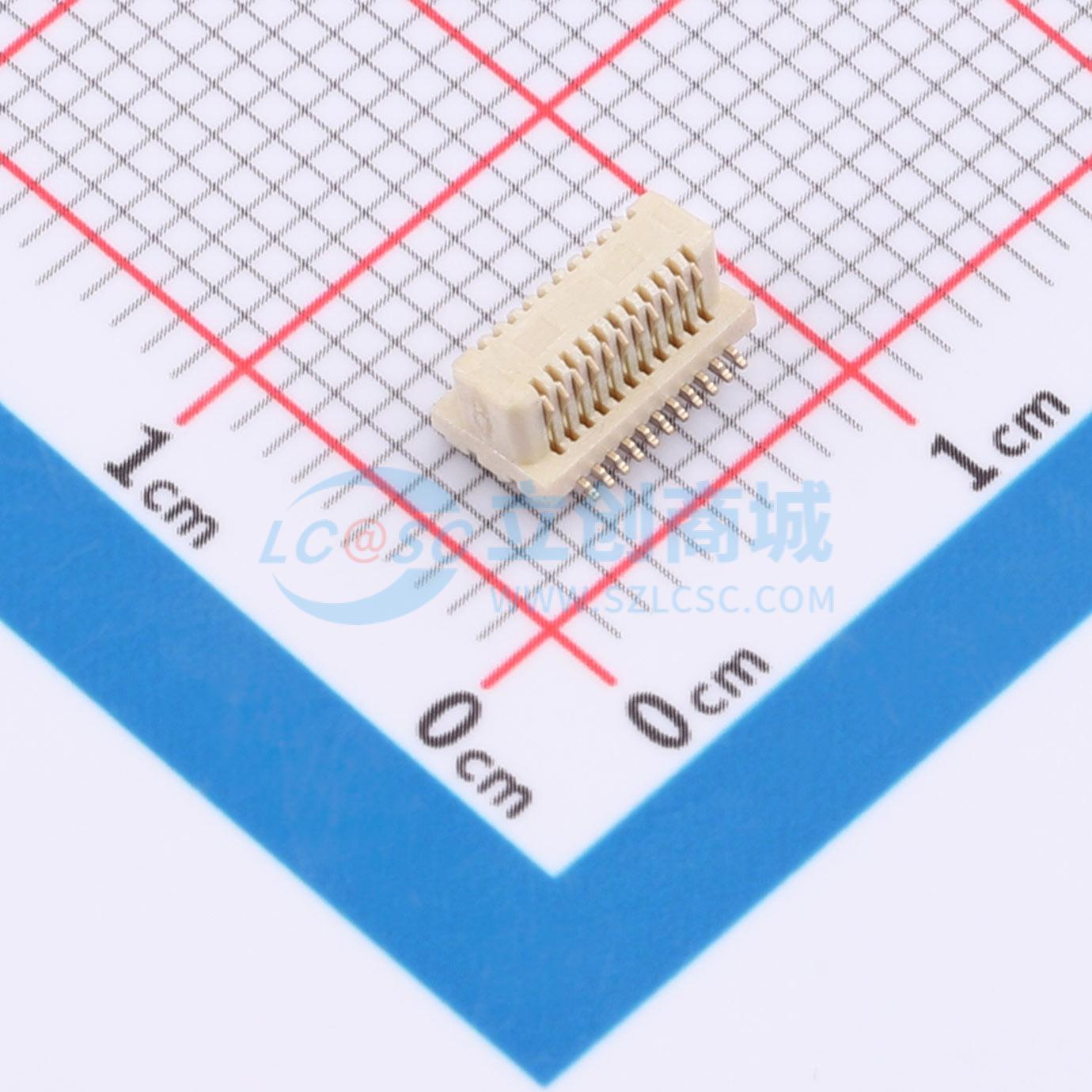 - 板对板连接器0.5 22P 公座 侧插 SMT 带柱 合高5.0