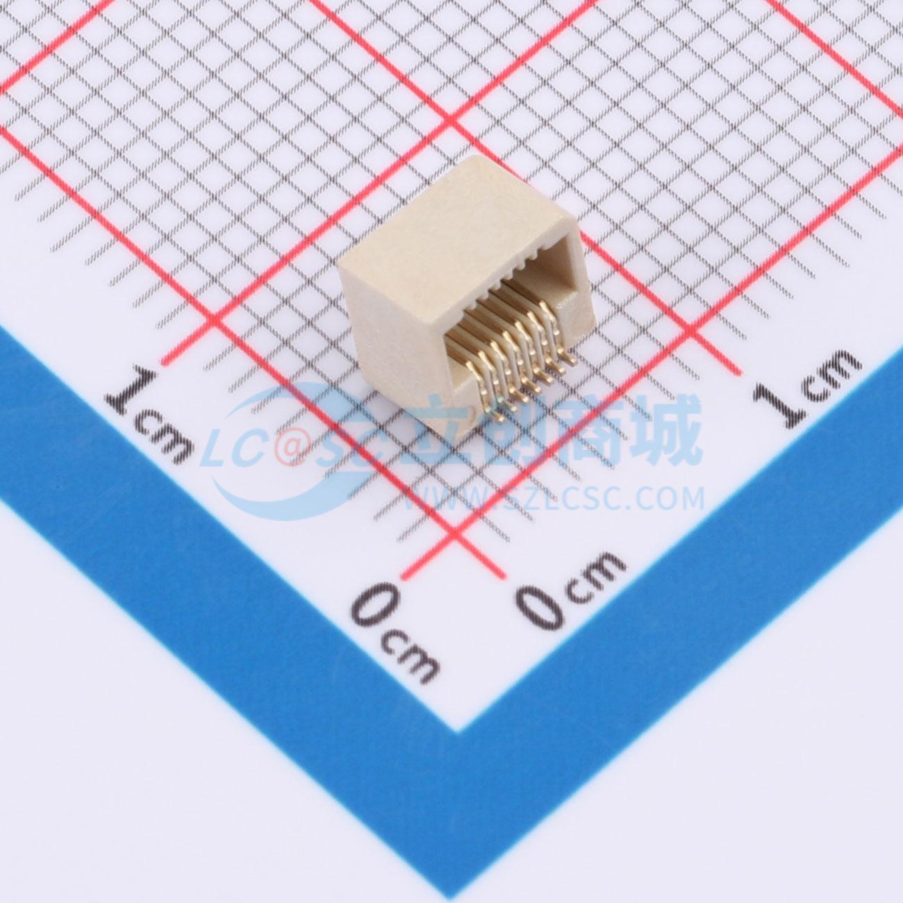 - 板对板连接器0.5 14P 母座 侧插 SMT 带柱 合高5.0