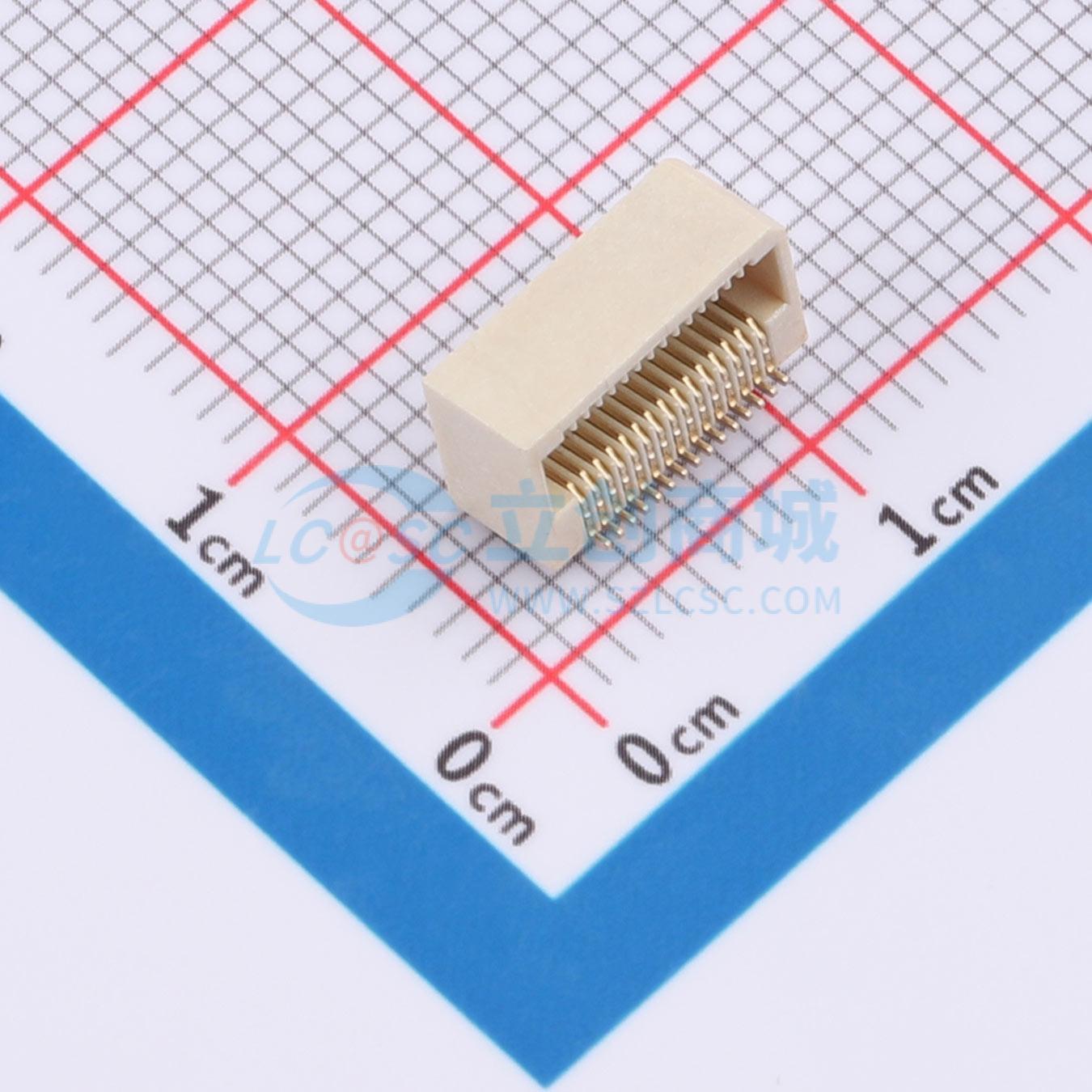 - 板对板连接器0.5 30P 母座 侧插 SMT 带柱 合高5.0
