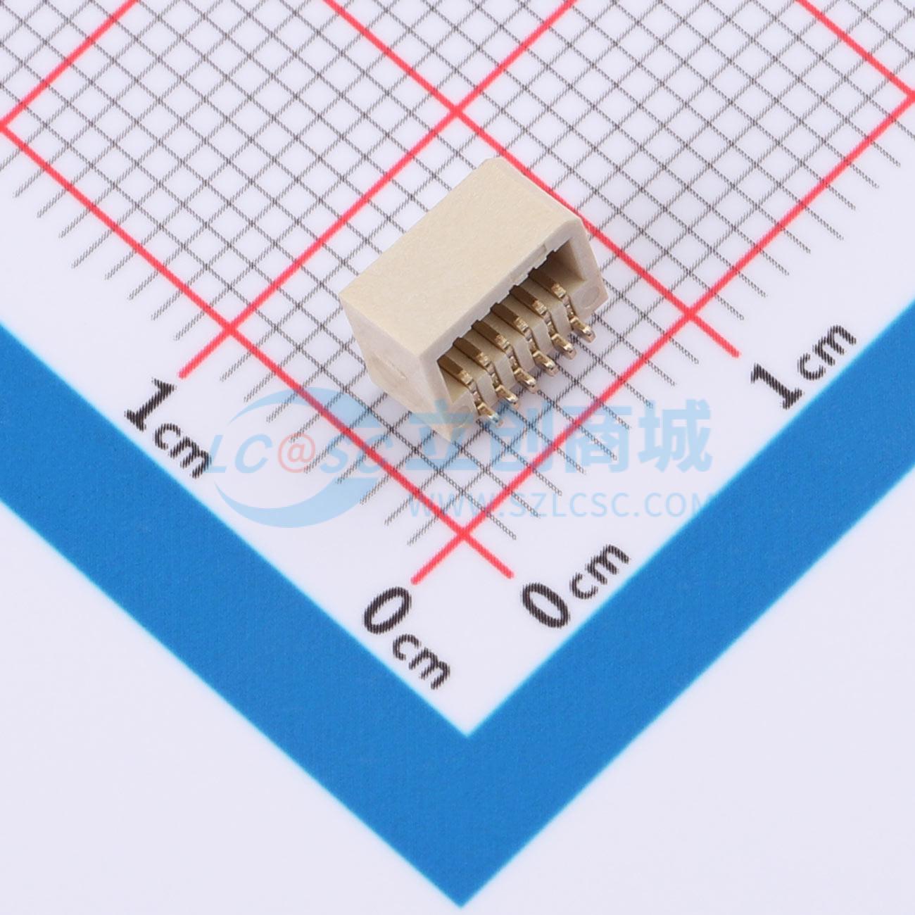 - 板对板连接器0.8 12P 母座 侧插 SMT 带柱 合高5.2