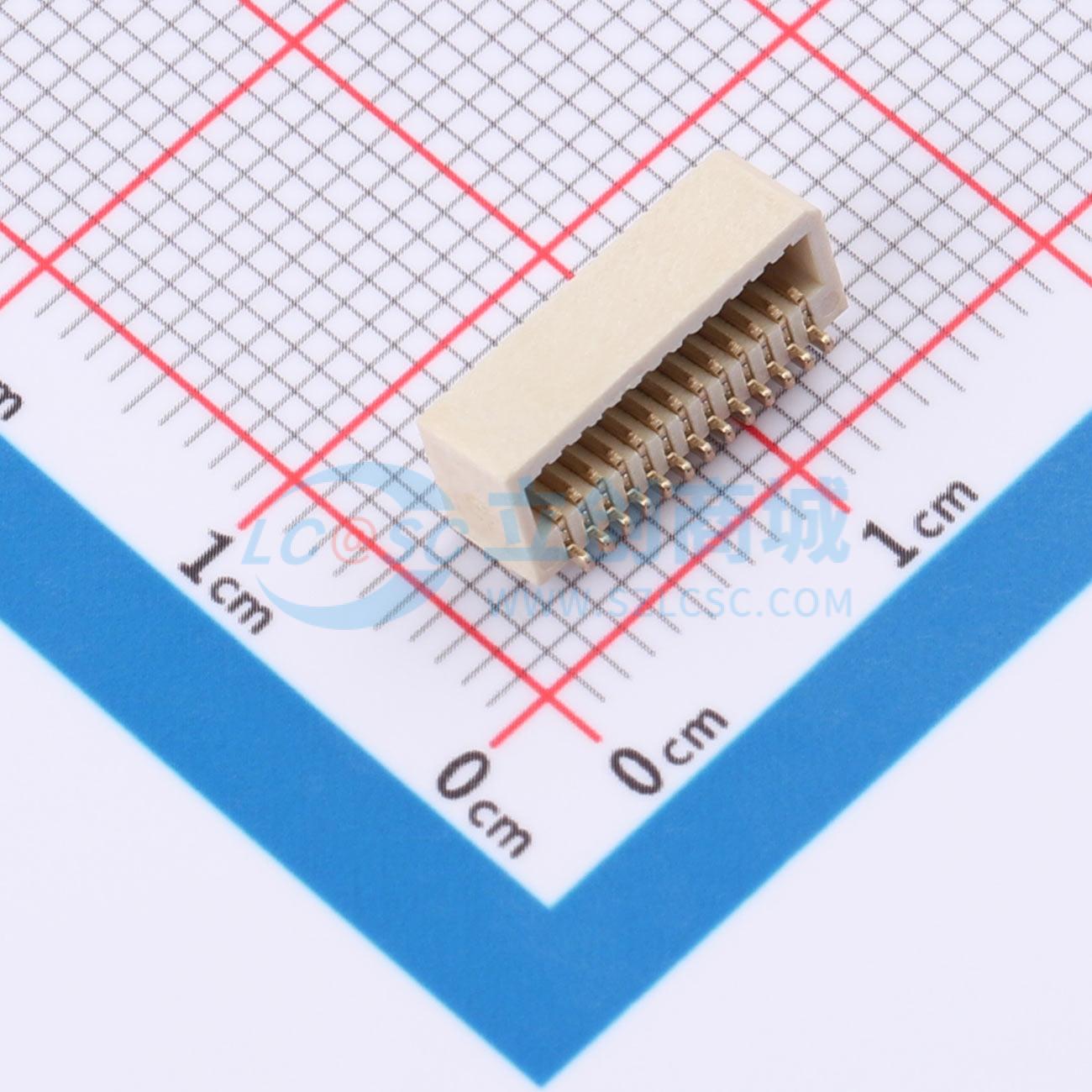 - 板对板连接器0.8 26P 母座 侧插 SMT 带柱 合高5.2