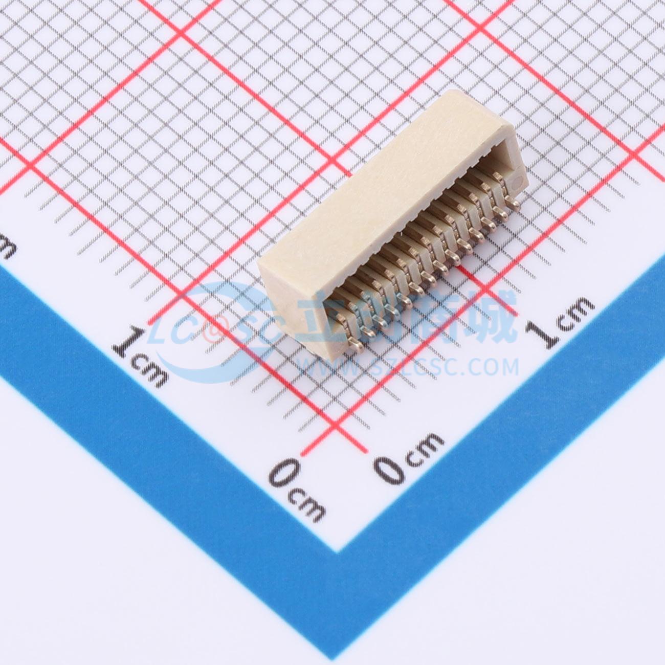 - 板对板连接器0.8 28P 母座 侧插 SMT 带柱 合高5.2