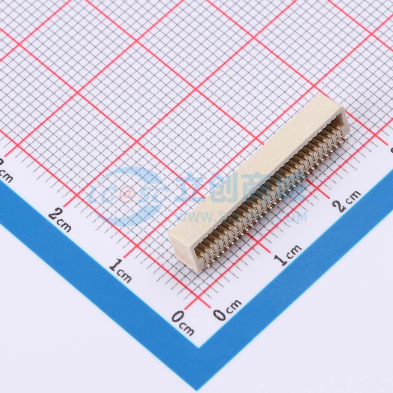 - 板对板连接器0.8 60P 母座 侧插 SMT 带柱 合高5.2