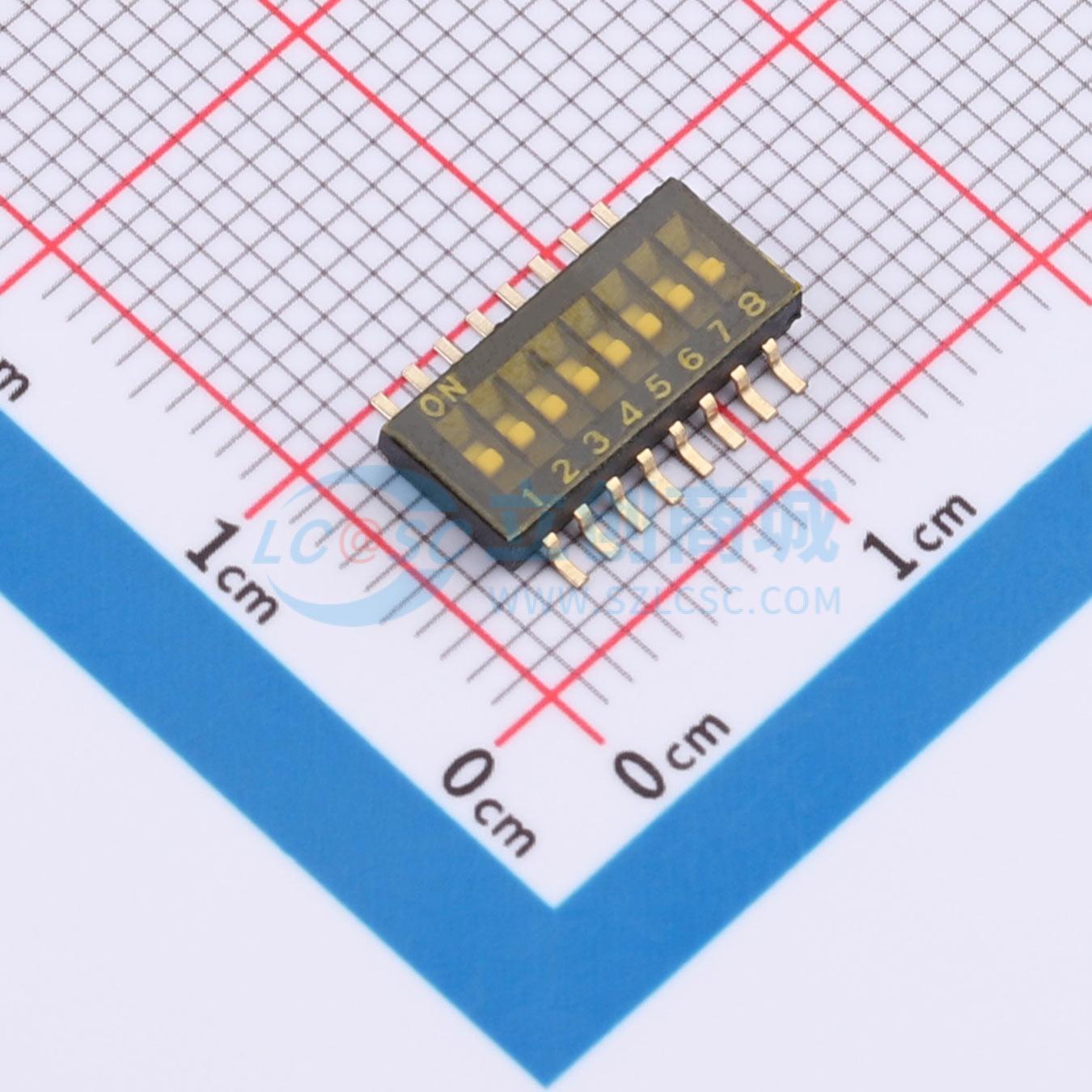 - 1.27mm间距 8位 贴片 DSHP黑色S脚 拨码开关