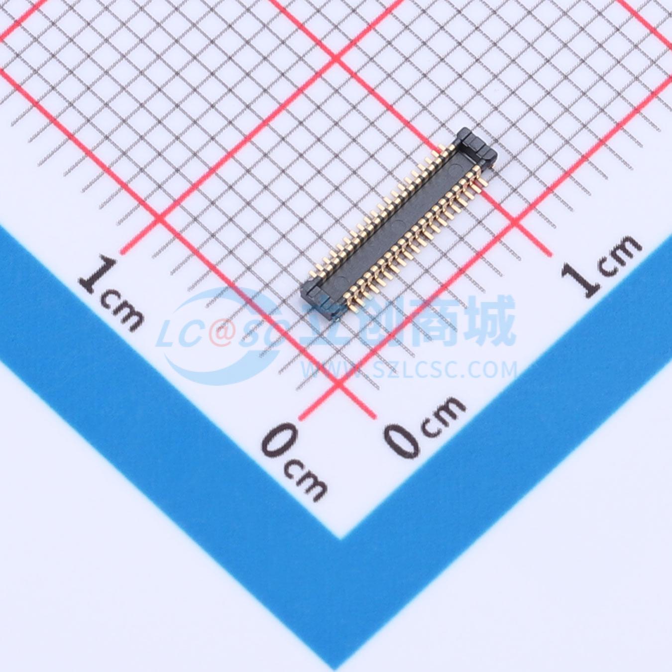 - 板对板连接器0.40mm Pitch 180º H1.0mm SMT型 公座 40Pin 黑色 镀全金1u",配套:母座