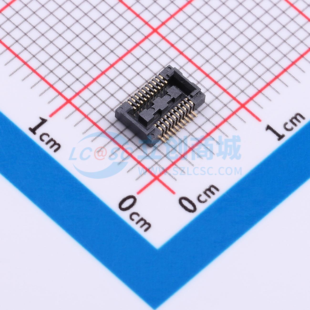 - 板对板连接器0.40mm Pitch 180º H1.5mm SMT型 母座 20Pin 黑色 镀全金1u",配套:公座