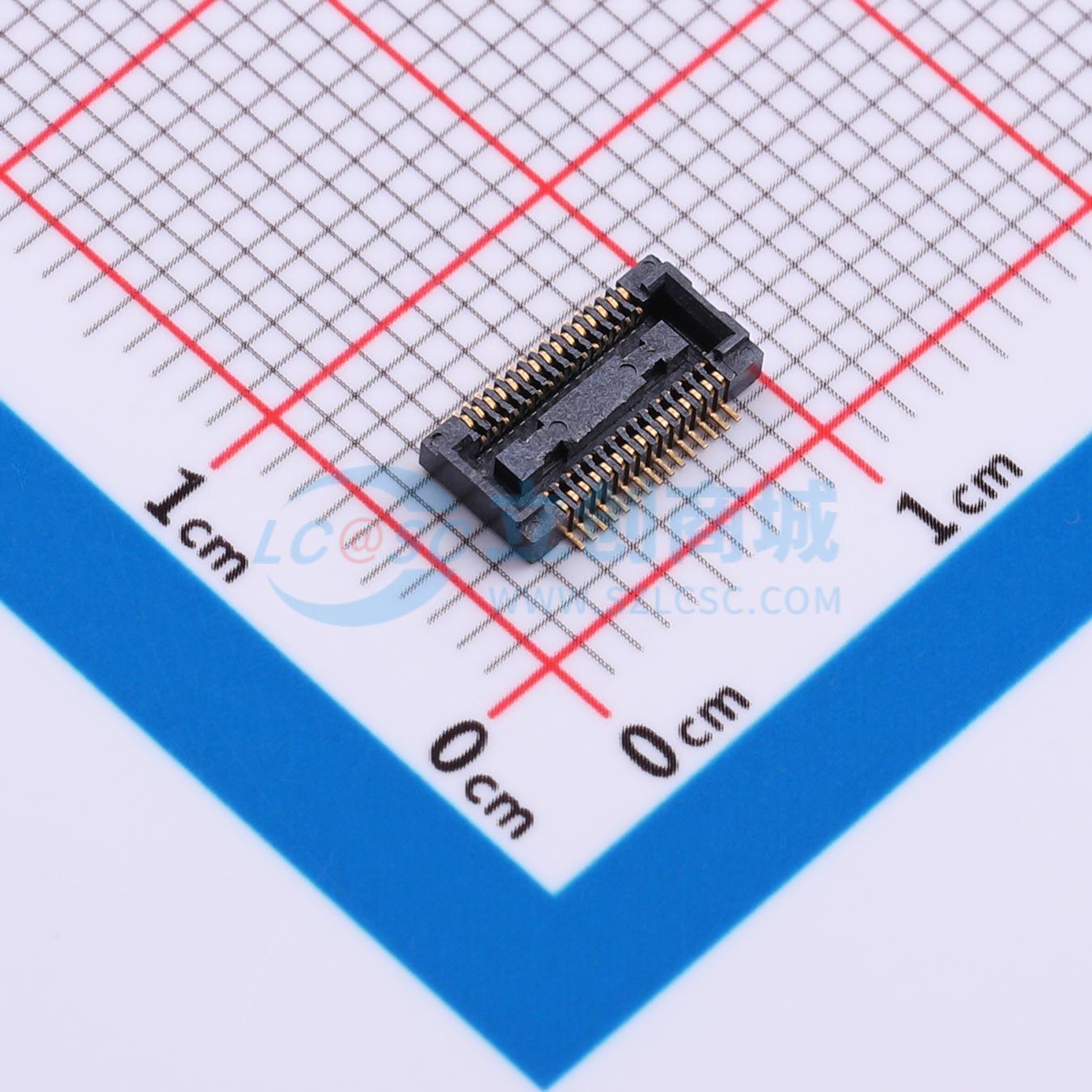 - 板对板连接器0.40mm Pitch 180º H1.5mm SMT型 母座 30Pin 黑色 镀全金1u",配套:公座