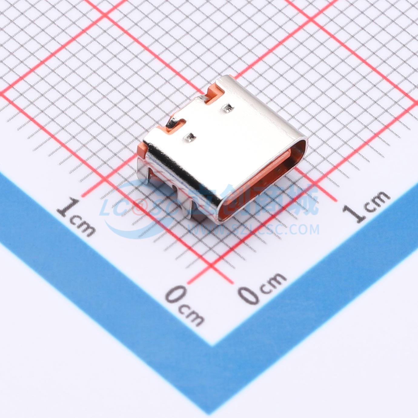- TYPE-C母座16Pin 板上四脚,无弹,L7.35MM,三次molding ,橙色胶芯
