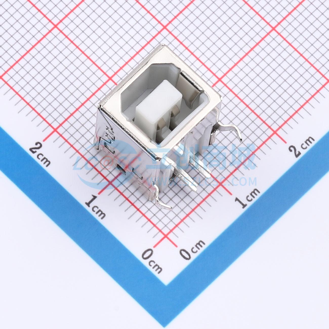 USB2.0 B母90度白胶铜壳,BF90°-DIP-弯脚