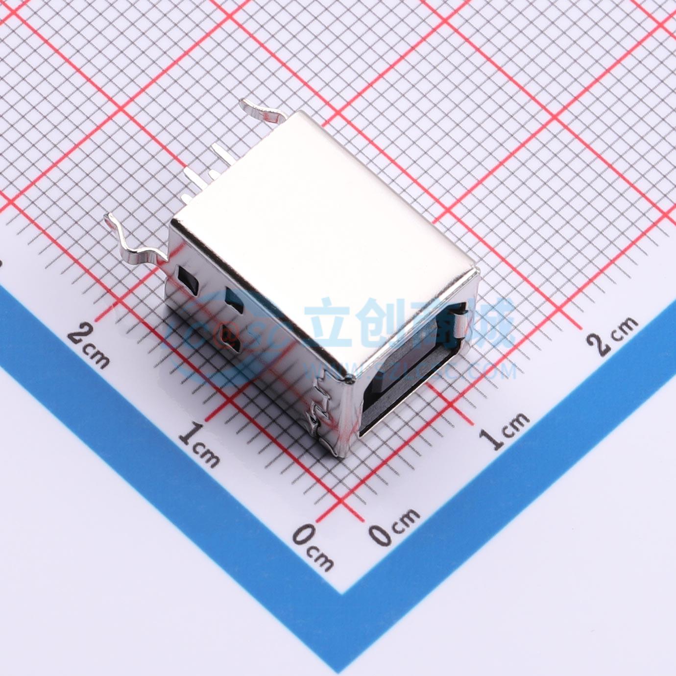 USB2.0 B母180度黑胶铜壳,BF180°-DIP-弯脚