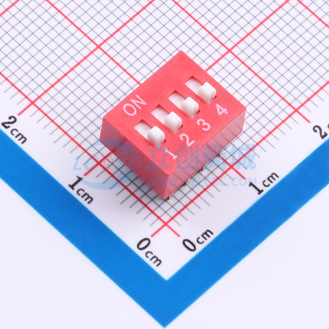 2.54mm 4P 凸起式 直插平拨 红色 拨码开关