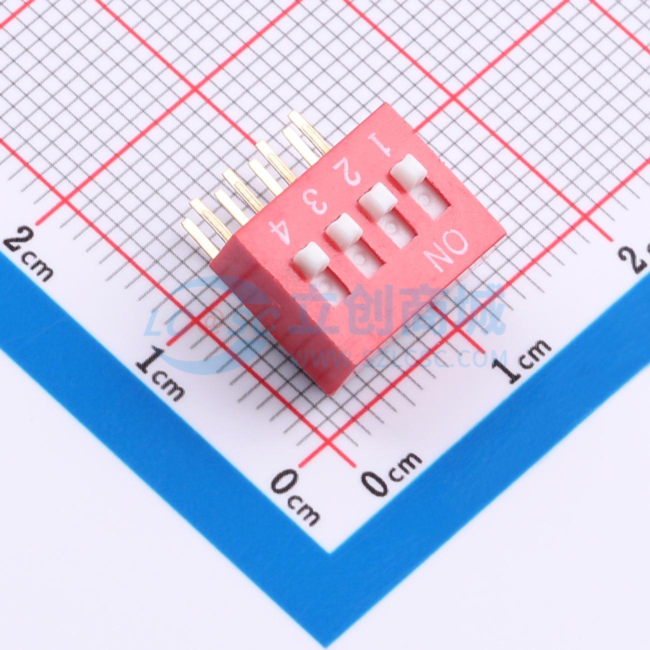 2.54mm 4P 琴键式 90度弯插侧拨 红色 拨码开关