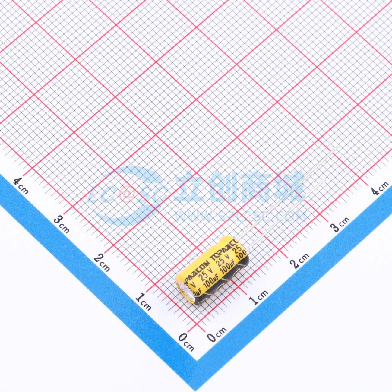 - 长脚电解电容-ELR1E101M061100Y-100uF/25V/6.3×11/105℃/±20%/PET/10000小时/Impd:0.45Ω/100KHZ
