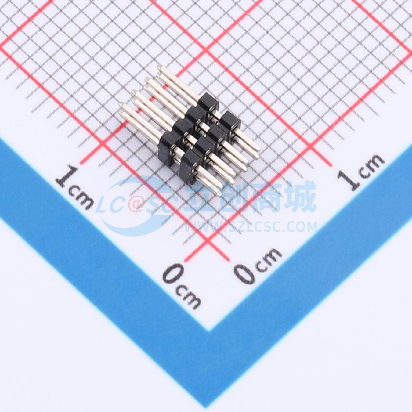 - 排针1.27mm直插 双塑双排 2x04P 4.0(1.0)1.0(1.0)2.3mm 针长9.3mm 镀金
