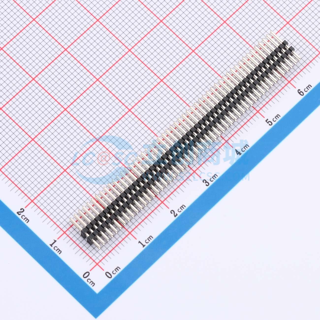 - 排针1.27mm直插 双塑双排 2x50P 4.0(1.0)1.0(1.0)2.3mm 针长9.3mm 镀金